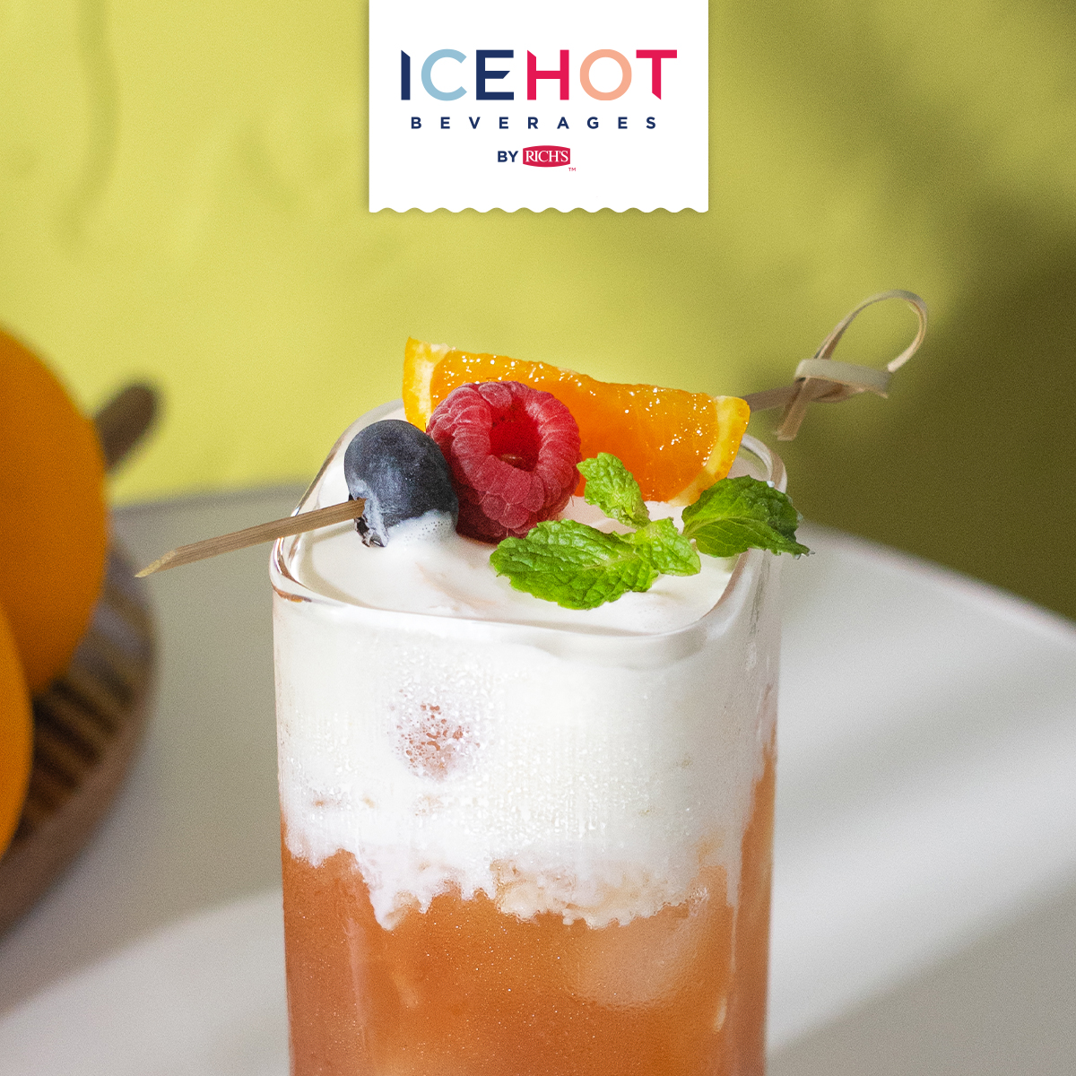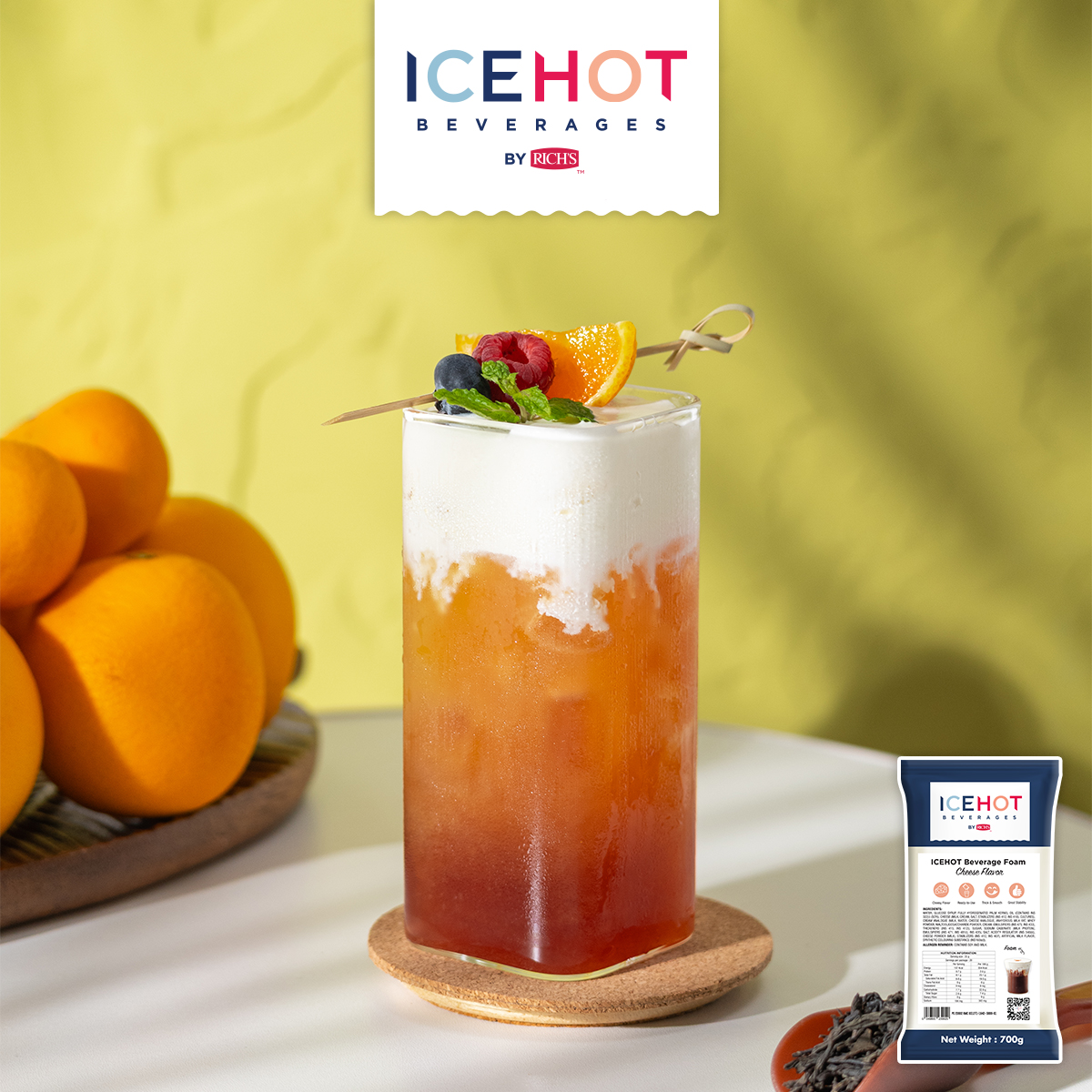 Orange Berry Breeze delivers a bright, fruity refreshment made with fragrant Da Hong Pao Tea, mixed berry fruit blend, and zesty orange juice for a burst of flavour in every sip. It’s finished with a smooth, silky pour of ICEHOT Beverage Foam Cheese Flavor for the perfect final touch.